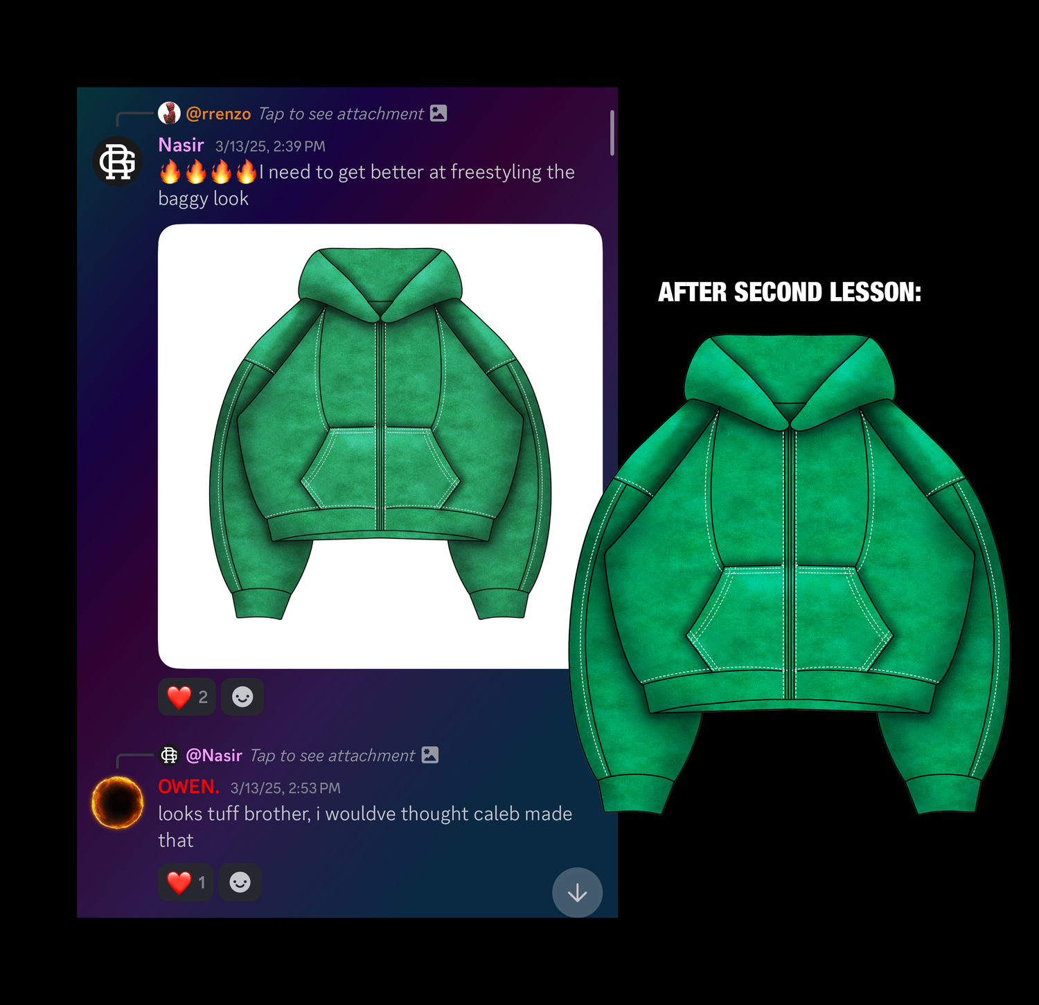 THIS STUDENT JOINED IN HOPES OF ACCOMPLISHING SIMILIAR MOCKUPS TO THE ONES I CREATE. IN LESS THAN THREE CALLS, WE WERE ABLE TO GET HER ON TRACK AND UNDERSTANDING HOW TO DRAW THE MOCKUP, TEXTURES, HIGHLIGHTS, SHADOWS, AND EVEN ADD DISTRESSING.
